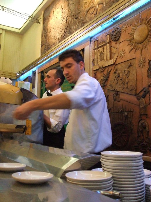 只是這些老牌咖啡館呈現的熙來攘往現代生活面貌,與美式連鎖咖啡館並無二致,義大利咖啡店通常是先在櫃檯結帳,領到一張收據,再到吧台前領咖啡,好的咖啡店永遠是人山人海,前排顧客快速享用完杯中物,後排顧客就迫不及待地遞補上前。