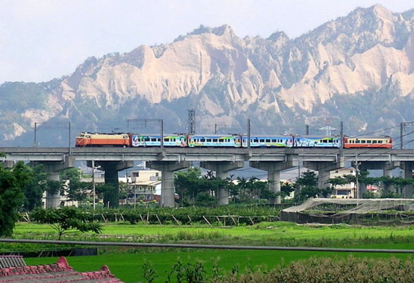 台中市后里區泰安里新火車站已成熱門觀光景點,遠眺新鐵道高架橋,有苗栗縣火炎山為背景,看著火車在高架橋上疾駛,風景如畫,景緻迷人。