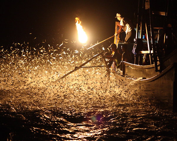在各式各樣的漁船捕撈方法中,最具特色的就是磺火漁業,俗稱蹦火仔,亦即漁民使用磺土,點火產生「強光巨響」吸引魚群,待魚群躍竄出水面後,馬上以叉手網撈起。現今全國亦僅剩 4 艘漁船以此種方式捕魚。