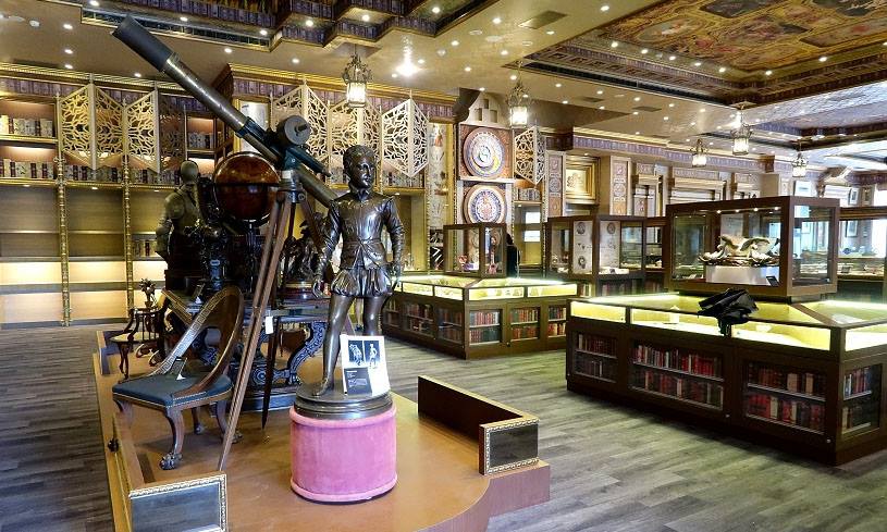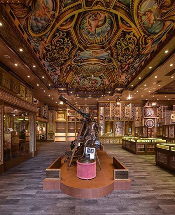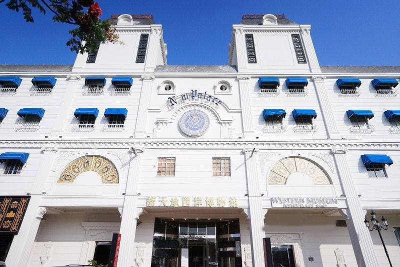 台中市東區旱溪東路新天地婚宴會館,搖身一變成了金碧輝煌的西洋古董博物館,佔地超過700坪,整個建築外觀變成充滿西洋風格的白底色調,一樓為法式餐廳,二樓港式飲茶及婚宴會館,館內裝潢彷彿走進了歐洲的古典城堡,天花板的細緻畫作令人嘆為觀止,裡面有超過千件私人收藏品。