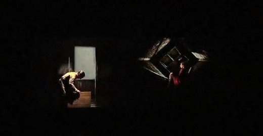 除了引人入勝,撲朔迷離的劇情之外,前後布幕配合著劇情、鏡位交錯,似假似真的呈現,燈光的氣氛掌控,每一幕畫面讓你無法分辨那是真的還是影像,讓人嘆為觀止呀!甚至同時在一個場也有兩個景出現,例如:爸爸要把小女孩藏在地洞內,一開始是爸爸帶著小女孩要蹲進洞裏,當小女孩蹲進去後,場景就一分為二,左邊是爸爸將地板要慢慢蓋住,右邊則是以女兒的角度。場景靈活的轉換還不僅如此,槍戰,屋內屋外的情形同時呈現,還有子彈從槍道中發射的那種真實臨場感,真的是太酷、太炫了!!妹問「為何要這麼麻煩,就直接去拍電影就好呀!」我說「這就是玩一種技巧及手法,導演及演員都要挑戰如何將這兩種不同的表演手法融合一體,克服困難,完美呈現,達到劇場表演的最高境界呀!」