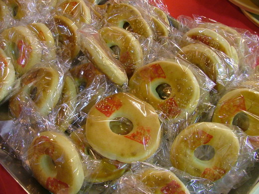王明朝說,老順香是夜市裡著名的老店,也以製作「鹹光餅」聞名新莊。所以,每逢農曆五月初一大拜拜,店裡總會接到大量的訂單,逼得老順香不得不提前幾天拉下店門,專心製作鹹光餅;就算平常時候,只作一般的麵包及糕餅,老順香的生意也很好,因而也獲得不少美食節目採訪。 具有新莊特色的鹹光餅,是以米和糖所做的,沒有添加任何香料或防腐劑。老闆王明朝說,過去,鹽光餅是以傳統柴爐土法烘製,現在則進步到以烤爐製作,但是它的美味沒有因此而減少,仍保有濃濃的古早味,產量也比以前增加,現在不但天天都吃得到鹹光餅,連台北龍山寺、 大龍峒所祭拜要用的鹹光餅,也都是來自老順香。