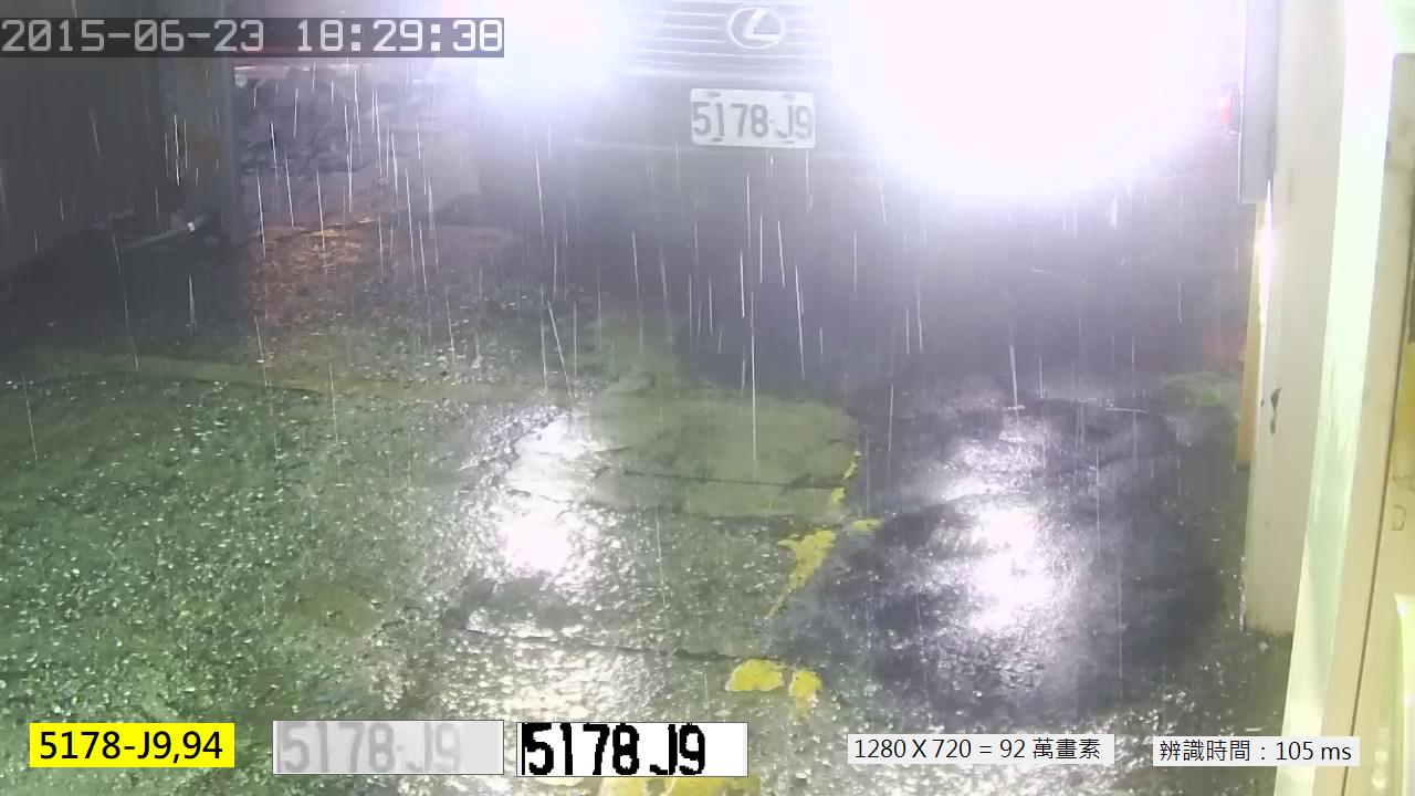 我給客戶的答案是:如果你是買我的「動態連續辨識」的軟體就完全不必擔心,但是使用單張靜態攝影來辨識車牌的軟體,就一定會很慘了!真的會讓辨識系統隨機的無法辨識車牌,進出車輛卡關!這個說法已經過很多客戶的實際驗證肯定,我的動態車牌辨識軟體在戶外環境的大雨中也是一定如常運作順暢的!