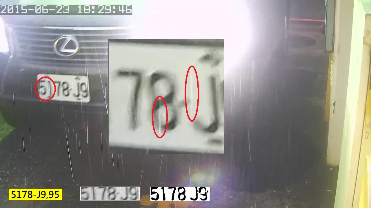 大家可以用目視判斷,如上圖的雨線密度,車牌被某個雨線切到的機率是近乎百分之百!但是其中有一半的機率雨線是切到字元的間隙,或不足以影像辨識結果的字元內某個角落,所以依舊可以辨識成功的「機率」是一半一半!如果你是只用單張靜態影像辨識車牌,你就有一半的機率會「無法辨識」,車子就卡關了!