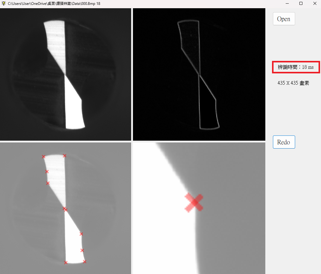 所以雖然AOI的辨識技術相對較簡單,達到高辨識率不難,但如果演算法不夠快速,也是會傷及AOI升級的經濟效益的!所以我會強調我的產品辨識不但要準,還必須很快!如上圖的一張435X435的影像辨識時間可以少到20毫秒以下!這是甚麼意思?鑽頭的生產速度絕對不可能這麼快吧?既然時間夠用,客戶就可以使用非常便宜的低階電腦都來得及做好AOI,還更省電環保!