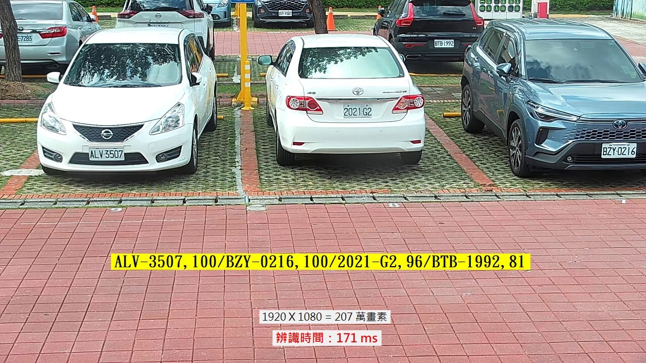 除了掌握出入口的動態資訊,知道目前場內有多少車輛?有哪些車輛?之外,通常也希望可以知道這些車輛在場內的狀況,哪輛車停在哪個車位?甚至是否違規阻礙了場內動線?或是霸佔充電車位太久?等等。這就需要在場內設置很多個監視器,定時輪詢拍攝每個角落的靜態影像作多車牌的辨識,再經過監視器位置資訊整合出車輛在場內的狀況行為。