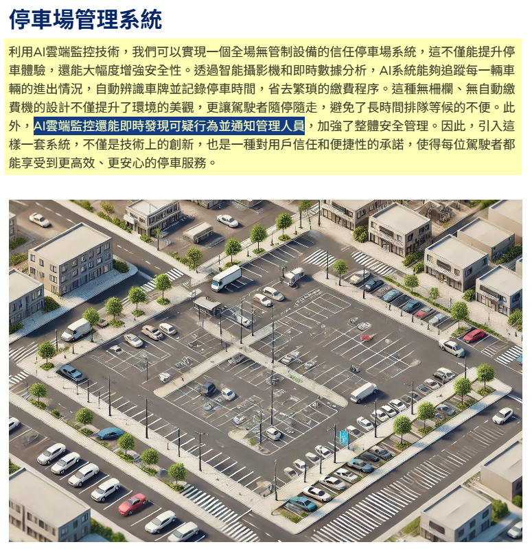 昨天這家公司來信詢問我的軟體,為了提供更好的服務,我當然會上網搜尋更多客戶資訊,發現他們有如上比較新穎的停車場管理設計概念!基本上就是用消極的監視取代積極的管制,做生意總是要賺錢的,不立即主動收費,如何營利?我無從得知,也不關我的事!我的工作只是設想自己的車牌辨識軟體如何幫他們實現他們需要的監視機制。