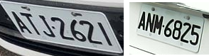 我說的「歪斜變形」的車牌是像上圖左這樣的!如果你說的「歪斜車牌」是如上圖右的狀況,那表示你的層級還是相當低的!因為圖右的車牌需要做的幾何校正只是整個車牌的2D處理,就是旋轉→平移→縮放三個步驟而已!圖左的案例如果只是做這些處理,字元只會更極端的倒向左邊而已!就更難辨識了!