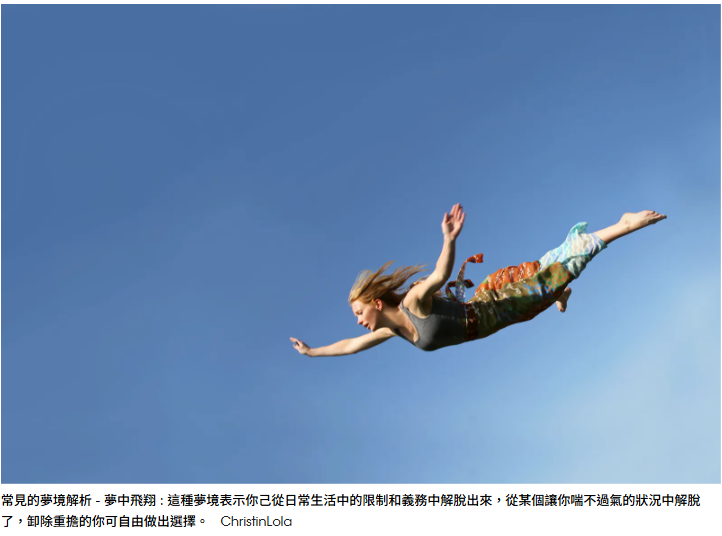 文章中說:「這種夢境表示你己從日常生活中的限制和義務中解脫出來,從某個讓你喘不過氣的狀況中解脫了,卸除重擔的你可自由做出選擇。」這真的跟我現實的生活很相呼應!我從大學轉系到中年轉業都是很勇於擺脫現狀開創新局的人!我總覺得人生只有一次,想做的事情不敢做就不會有下次的機會了!我的人生過程中很多次的一念之間,都讓我的人生境遇結果大不相同!不然海洋學博士是怎麼變成軟體公司的老闆的?