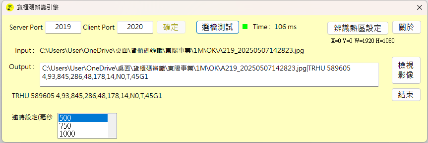 這就是我的客戶誤將「靜態」辨識引擎當作「動態」軟體使用的誤會!一般來說,這種辨識引擎都是用於手拍或觸發機制控制拍攝的單一影像,基本上就是會有貨櫃碼(或車牌)目標的!剛好沒有拍到目標會讓我的軟體窮忙的案例算是極少數例外,就不會造成太大的問題,如果絕大部分是無目標的空影像?那就糟糕了,即使不會當機也是很浪費資源與能源的!設計逾時門檻設定,就是可以限制單一案例最高的辨識時間,不會在無貨櫃碼的影像上浪費太多資源。