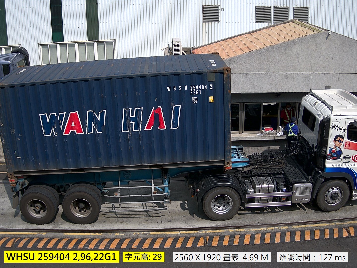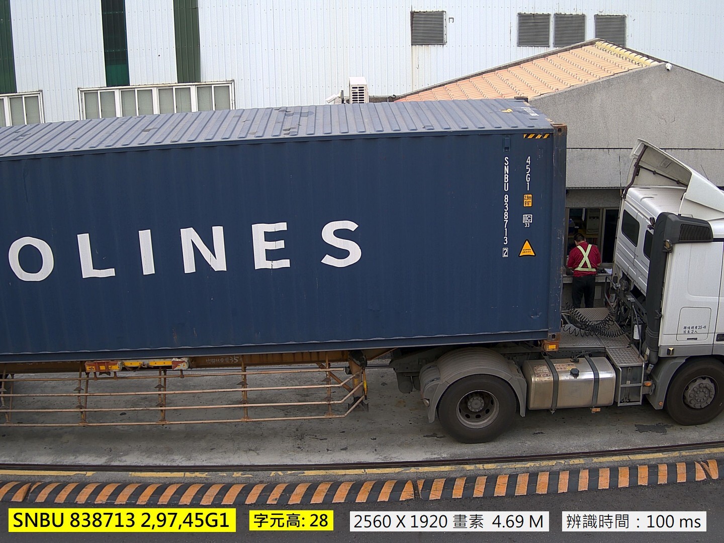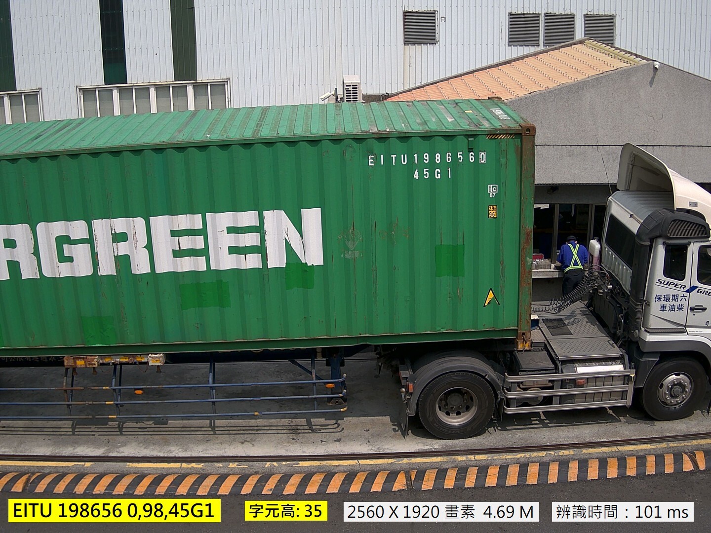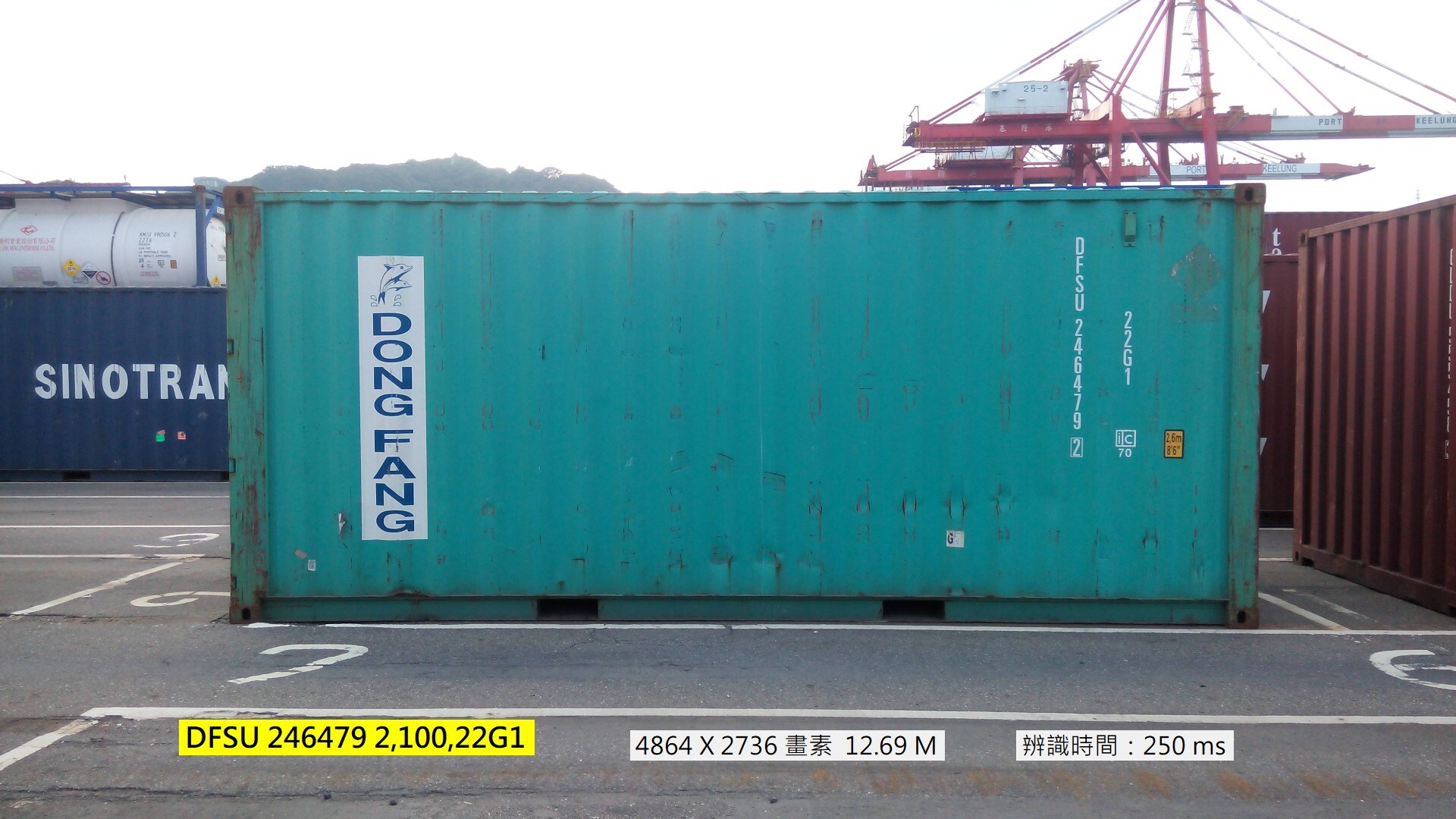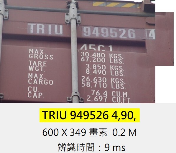 我的貨櫃碼辨識加速工程大致完工了!效果好到出乎我自己的預期!之前與東陽實業公司合作研發時,如上的側面取景是由固定位置的攝影機拍攝的!因為貨櫃很大嘛!貨櫃碼的位置也不固定在前或在後?有時候是橫向的!要大致拍到一整個貨櫃的側面,用兩百萬畫素影像拍,目標字元就有點小;用如上的近五百萬畫素拍呢?字夠清楚了,但辨識速度就有點慢了!常常會接近一秒鐘!