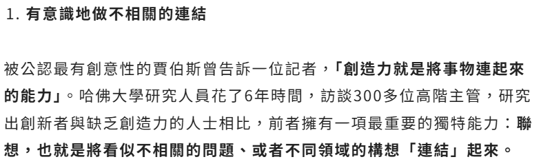 如同上面節錄的文章片段所說「創造力就是將事物連起來的能力」,絕對不是毫無邏輯的KUSO惡搞!我想到的最佳比喻就是拼圖!年輕人的腦袋比較像還在嘗試拼圖的初期,有很多還不相關的獨立碎片散布各處,位置還不見得正確,很難連起來出現新的風貌成果,但是隨著年紀與知識經驗的增長,老人腦中的拼圖就越來越接近正確與完整,也有更多機會連結很多片段變成有意義的成果!
