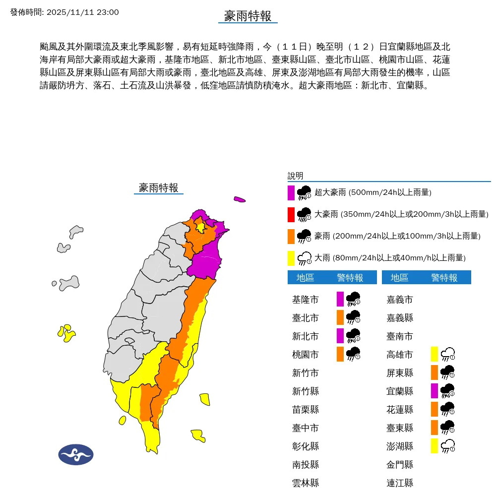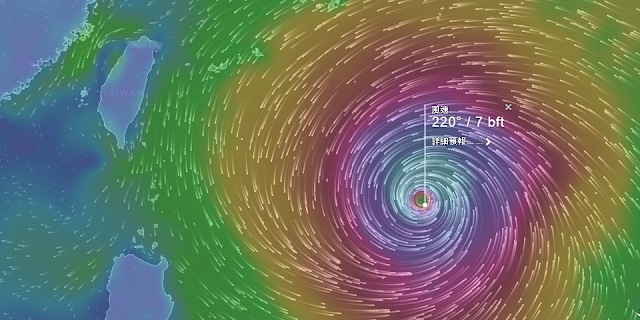 如果只看上面的豪雨特報圖,你會不會以為颱風正從東方,甚至偏東北方直撲台灣而來?但是事實上同時間的颱風動態位置與預測圖如下!情況正好跟簡單的直覺想像相反!颱風正從「西南方」直撲台灣而來!豪雨預報居然說更接近颱風中心與預期路線上的台南不會有事?反而離颱風最遠的東北部會很慘?你不覺得奇怪嗎?
