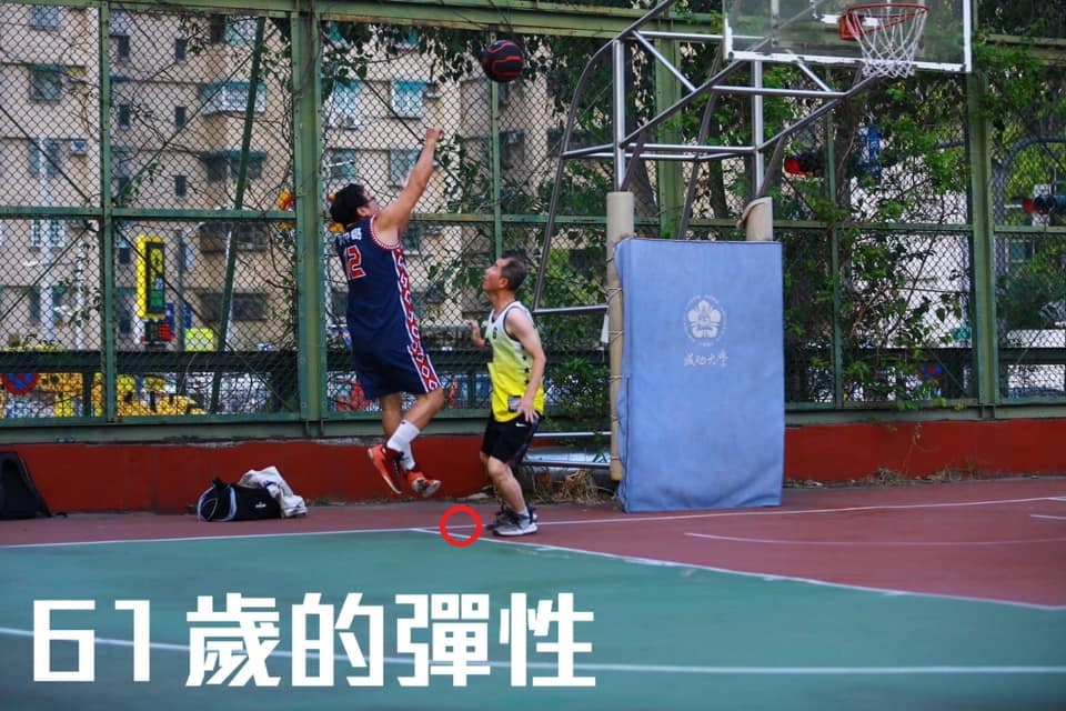 但是最近情況有些不同了!這兩三個月我堅持每天到球場投進300球的魔鬼訓練已經看到成效!感覺又回到年輕時可以隨心所欲的狀態!即使真的測試垂直起跳高度或跑百米的速度一定沒有年輕時厲害,但大致上想得到的動作就真的可以做到了!上圖是三年前球友偶爾拍到的畫面,現在一定跳得更高了!現在連帶球上籃都變得順暢了!