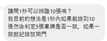 有位系統整合商如此問我!他們自己有軟體設計能力,想直接跟我買DLL來開發自有軟體,所以有此一問!既有「閘門」當然就是車輛停下等待辨識的停車場操作模式了!他的構想是設計一個觸發裝置,等車壓線停到定位之後連拍十張作統計的意思!