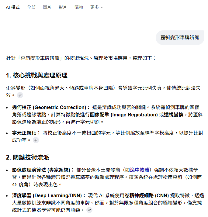 果然這下AI躲不掉了!因為我問了明確有針對性的車牌歪斜變形的問題,AI就被迫要說實話,或是沒有防備下不小心說溜嘴了!不但出現逸中軟體,還把我們列在關鍵技術流派,排名甚至在深度學習之上欸!這叫AI影像辨識的主流派面子往哪裡擺啊?但是我這個人有點憤世嫉俗,從學術界被欺負排擠開始,都變成習慣了嘛!我估計過幾天很可能大家也這樣問AI時,我又會「被消失」了!所以你還那麼相信AI一定會說實話嗎?也因此有那麼多大廠商想操控主導AI的管理權限!