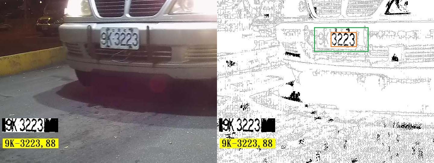 像上面這個相當模糊的車牌影像,即使我用盡了已知OCR技術的極限,也只能勉強切割出四個數字目標,但是從這四個目標我已經可以合理猜測這是某個車牌的一部份,只要按照車牌可能的格式外推搜尋,是有可能拼湊出完整車牌的!但從無法切割的模糊影像中找到可能的字元不是OCR技術擅長的事,反而是CNN的強項!