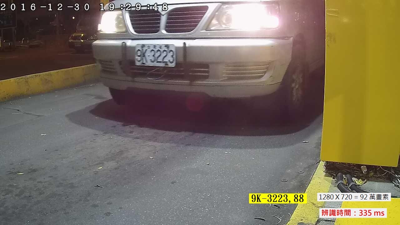 所以我毫不猶豫就會使用CNN的技術概念,在這四個字的前後地毯式搜索有沒有很像英數字的目標!這其實並不困難,因為從已辨識到的四個數字,我知道這張車牌的字元應該多大,傾斜變形的狀態也應該跟這四個已辨識的字元一樣,所以並不會像一般CNN毫無前提下的全圖搜索那麼耗時,如下圖所示不過大約0.3秒而已!