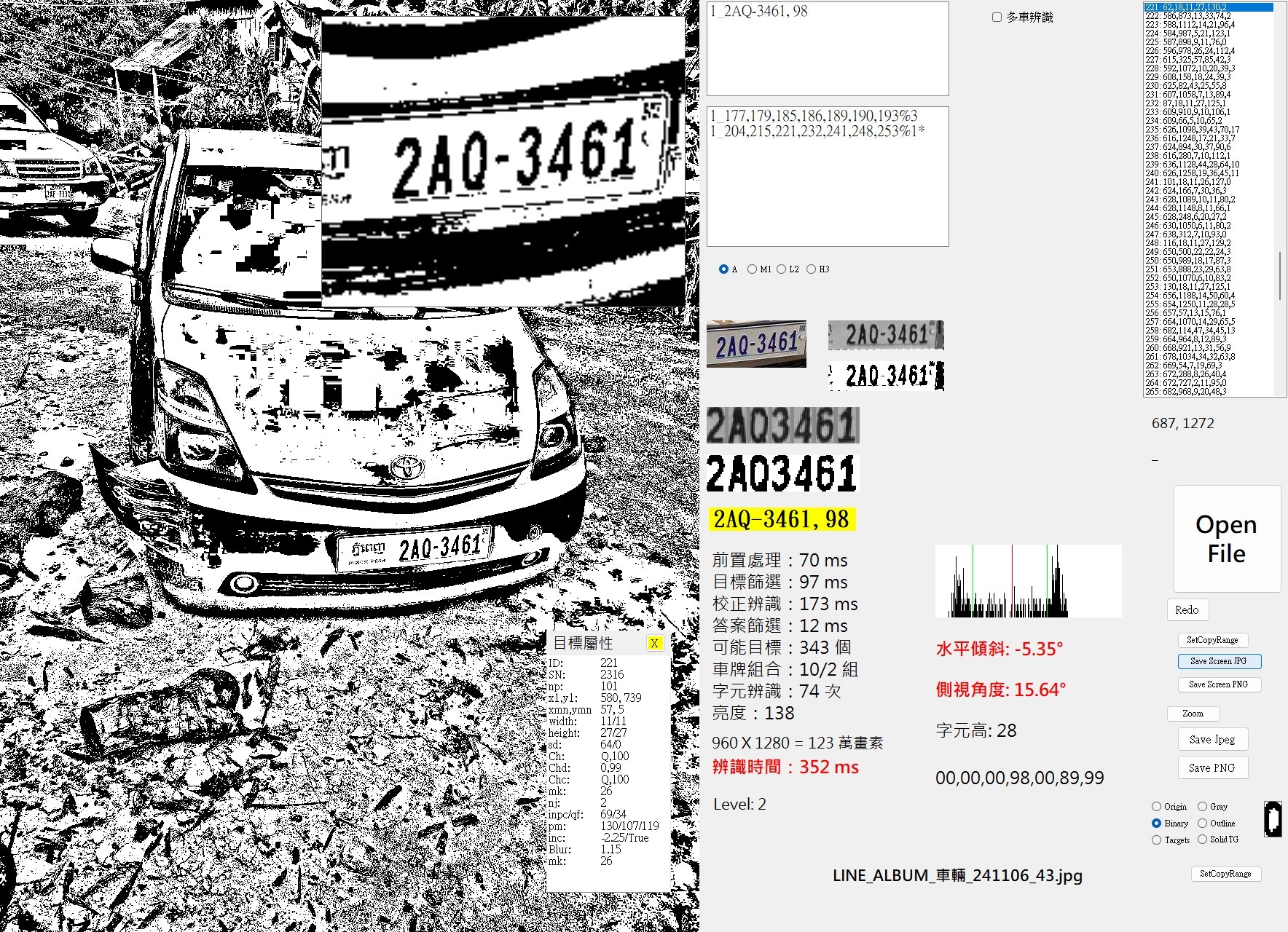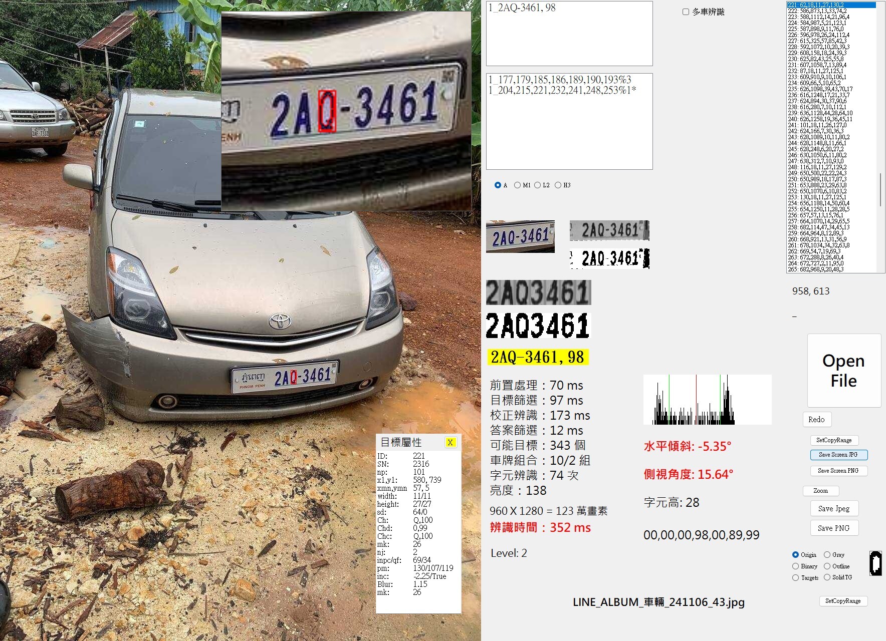 上面是我日常研究車牌辨識核心時工作用的研發程式執行過程的截圖,這些程式當然是我自己依據我的研發需求逐步開發的!給大家看這些的意義在哪裡?就是想讓大家清楚意識到:我的影像辨識與「他們」說的所謂「AI」影像辨識?就是以CNN與深度(機器)學習等統計學技術為主體的那種影像辨識的實質差異!