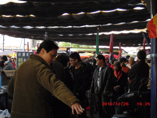 星期假日,下午出了大太陽,趁著好天氣,去逛了一趟跳蚤市場。同往常一樣的人潮,但多了許多攤位。或許年尾囉,許多家庭,整理出許多雜物,轉向到了這裡,換點現金好過年。
