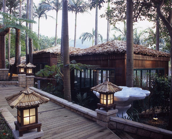 除了豐富多元的餐點以外,餐廳提供的溫泉泡湯服務,也非常值得一提。溫泉設施總共分成四個部份,分別為男、女SPA大眾池、個人按摩池,以及家庭按摩池等。不論是露天的大眾湯池,還是個人湯房,都洋溢著濃厚的南洋風格,非常具有特色。