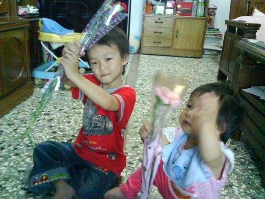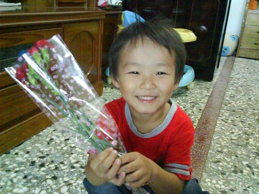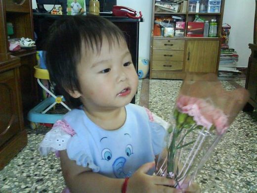 而我明目詹膽拿著花跑來跑去的-因為高興、開心![]()