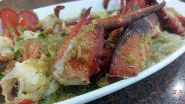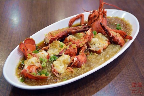 蒜香粉絲龍蝦是大祥最經典的吃法,盤子鋪上冬粉後,擺上處理好的整隻龍蝦,以XO醬調味,上層再鋪上蒜泥等調味料,蒸熱的過程中龍蝦湯汁和蒜汁流下,吸飽了醬汁的冬粉更是好吃得大家爭相挾取,所幸欽差大人我手腳特快,好吃的絕不輸人!