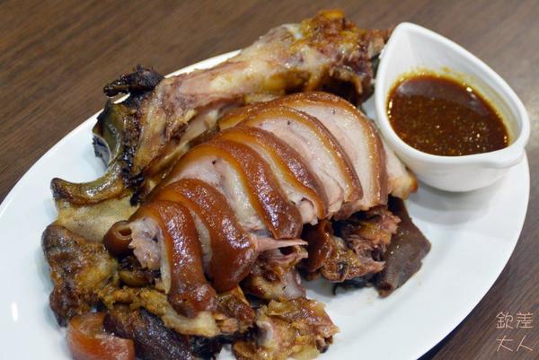 新鮮鵝肉以五香、甘草等辛香料和藥材醃漬三天入味,以熱水汆燙後,淋上白醋麥芽醬風乾,隔日進爐燒烤,醬汁完全吸收進鵝肉裡,滋味甜美無敵啊!