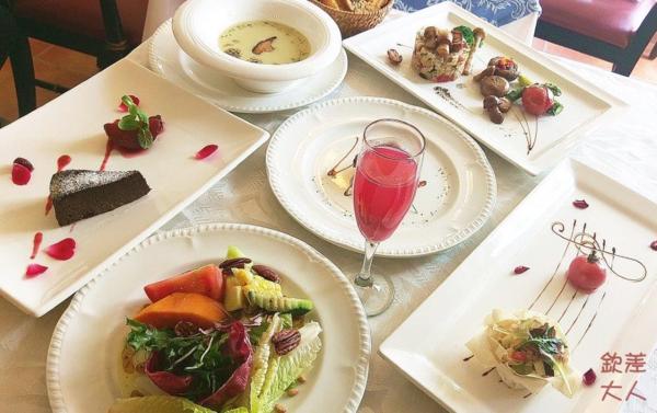 特別的是,斐麗巴黎廳大量運用珍貴的黑松露入菜,許多主食餐點甚至比薩都可見黑松露的蹤影,從松露蘑菇湯、松露燉飯、松露醬天使細麵到黑松露比薩等,讓黑松露不再是遙不可及的食材。餐點價位從單點主菜200多元起,到400多元起的套餐,平均消費每人約4、500元起,想要吃點高水準的蔬食料理,真的物超所值。