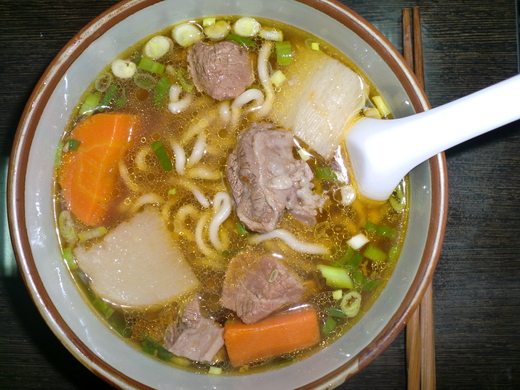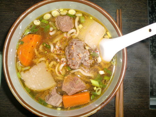 老爺閒來無事時,就喜歡研究吃的, 當然家人有口福了,這是最近做的牛肉麵,超專業的,入口即化的蘿蔔,超甜,牛肉軟又 Q,就看圖吧!因為我不太喜歡吃肉,所以相片中肉少,兒子們的可不一樣喔!超大碗。