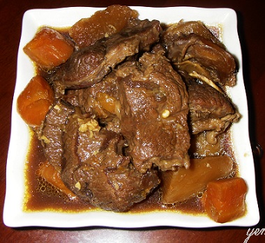 今天第一次煮這一道紅燒牛肉,原本是要學酸柳丁的蕃茄牛肉麵,可是我不喜歡吃番茄煮的食物,所以就給它煮成紅燒牛肉了,不過這道菜只要加麵就成紅燒牛肉麵,淋在白飯就成紅燒牛腩飯,可以說一舉兩得,最重要的是小孩們吃的很高興,這是我最大的快樂了。