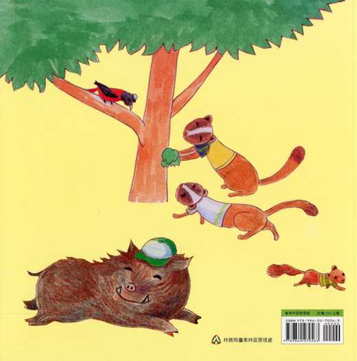 松鼠送來無患子種子做成的項鍊、青剛櫟(音同立)種子串成的耳環,山豬送來蘭嶼肉豆蔻種子鑲綴的鞋子,白鼻心送來山棕葉子纖維做成的裙子,猴子送來蝴蝶蘭做成的花冠,蝴蝶送來山芙蓉編織的嫁衣,紅嘴黑鵯送來相思豆種子穿成的戒指、倒地鈴種子串成的手環,祝小綠平安、健康、幸福、快樂及美麗,還有無盡的想念。