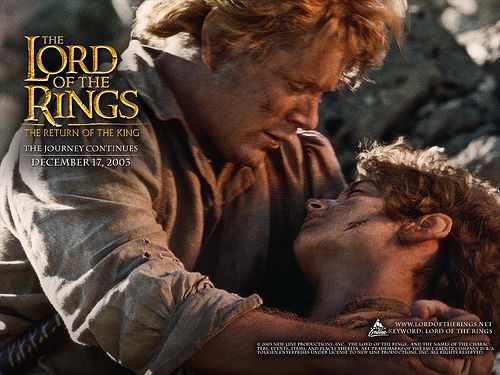 【魔戒3】帶著美國人五十年來懷抱「不可一世」的唯我獨尊夢想,準備衝向不可能的終點之際(就像美國人已經準備衝向人類下一個不可能的目標火星),電影最後卻描述歷經千辛萬苦的佛羅多,在登上末日火山即將毀掉魔戒那一剎那,他竟把魔戒套進了自己的食指:「它是我的!」美國人砰然掉落已經起立許久的座位,良久良久之後,所有美國人又都再度起立了,一股來自後腳跟的力量,一灘掉落座椅上淚水,教他們由衷體認:我們已經忘記自己是個凡人太久,而美國精神正是從每一個凡人都可以力達偉人之路出發的。