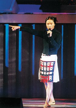 這不禁令我們想起,早年張國榮對女星毛舜筠一見鍾情,立即以勇敢的男人心向她發出「閃電式的求婚」,沒想到卻嚇壞了毛小姐;這次他經過幾年來的步步為營後,終於發出這驚天一唱。