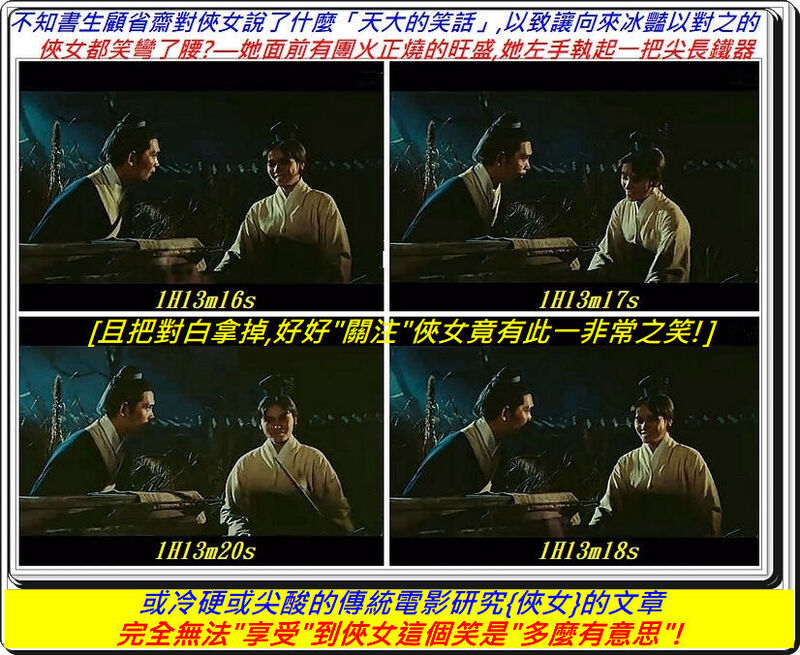※ 這是整部影片劇情推進的第5天;我們之後會把{俠女}一片全部的時間表,詳盡列出。
