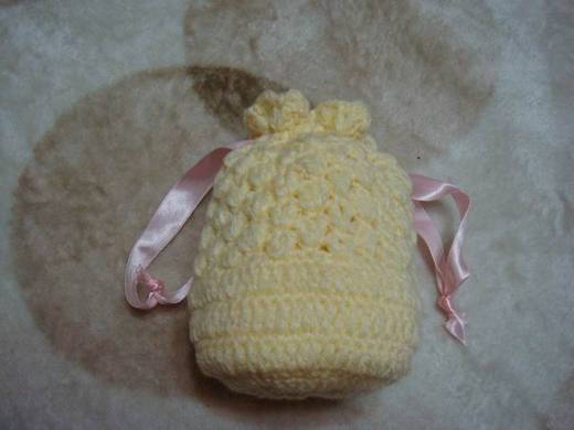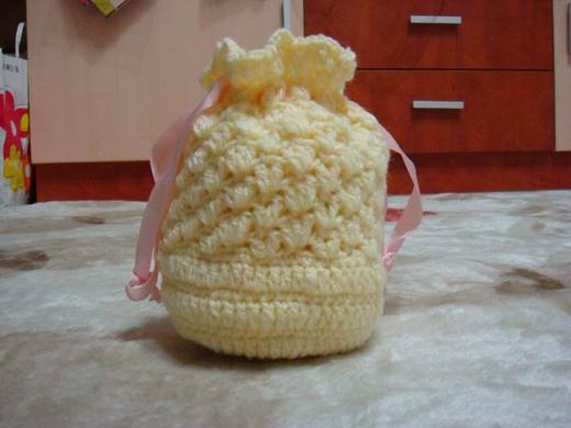 這個束口袋就是今天的成品,花了大約半天的時間做的,編好後覺得看起來很像鳳梨,姑且命名為鳳梨包。