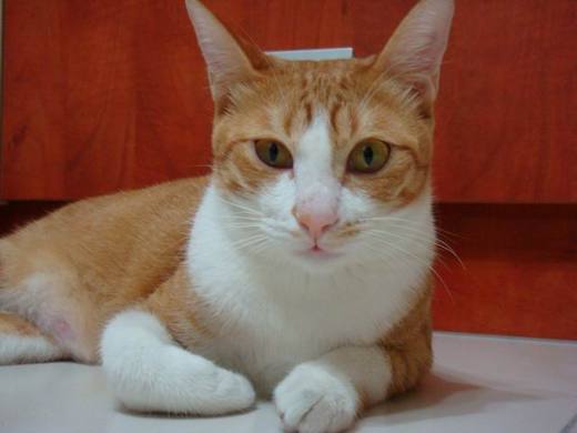 把睡夢中的橘子叫醒來當比例尺之後,不太爽快的牠索性不睡了,擺好姿勢瞧著我們在變些什麼把戲;覺得橘子實在太可愛了,所以給牠來了張特寫。