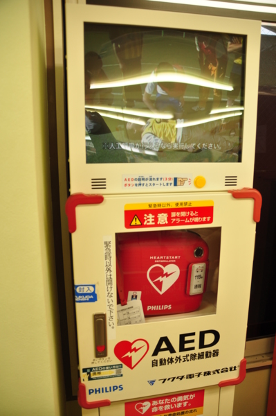 [日本高速公路休息站內AED~上方還有教學影片不斷撥放喔!]