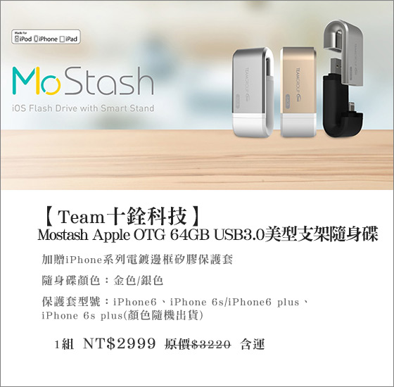 .....Team十銓科技-Mostash Apple OTG 64GB USB3.0美型支架隨身碟+贈iPhone系列電鍍邊框矽膠保護套"哪裡買最便宜.心得文.試用文.分享文
