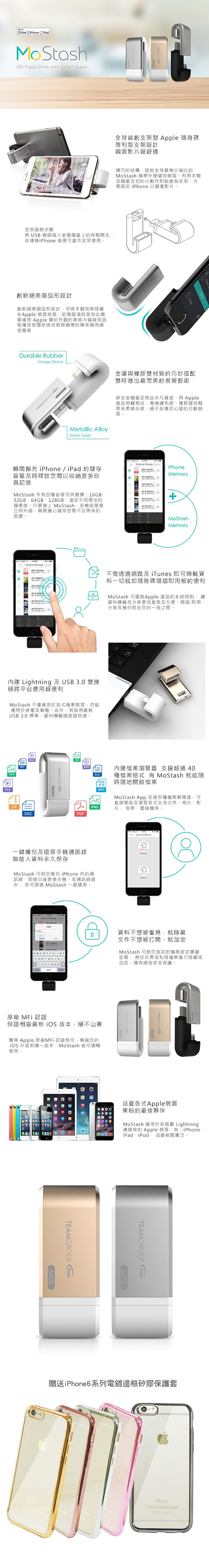 .....Team十銓科技-Mostash Apple OTG 64GB USB3.0美型支架隨身碟+贈iPhone系列電鍍邊框矽膠保護套"