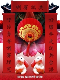附上一副對聯就當是『講笑虧』吧!請看倌們用河洛話發音。