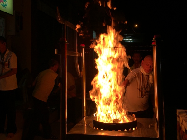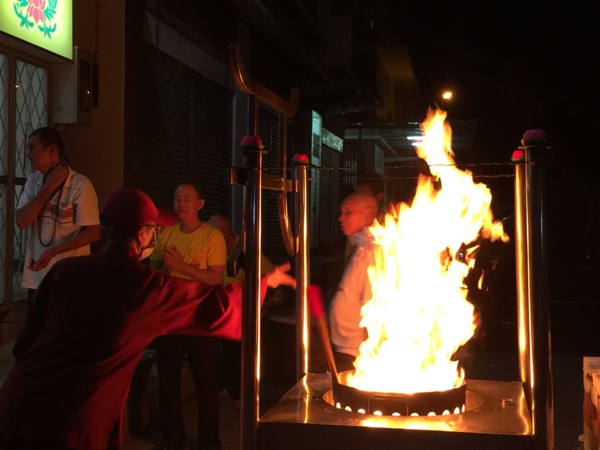 首先請大家雙手合十,我們虔誠一心頂禮大恩遍知具德圓滿真佛宗依怙主大圓滿覺尊者聖尊蓮生法王三身佛佛父佛母,頂禮大持明金剛上師盧勝彥密行尊者,頂禮大白蓮花童子華光自在佛白蓮花王,頂禮阿達爾瑪佛本初佛佛父佛母,頂禮真佛宗歷代大圓滿傳承祖師,頂禮今日法會火供主尊:南摩妙音天女及其眷屬。頂禮西天無極瑤池金母大天尊、頂禮金剛手菩薩,觀世音菩薩,文殊菩薩,頂禮蓮花生大士,曼達拉娃佛母,伊喜措嘉佛母,蓮師八變諸尊。頂禮真佛宗八大本尊,頂禮十方三世如海部眾壇城主,頂禮龍樹菩薩、阿底峽尊者、宗喀巴大師,祖師瑪姬拉尊者,頂禮不動明王,大威德金剛,穢跡金剛,大力金剛。頂禮大幻化網金剛壇城諸尊大殊勝黑嚕嘎佛父母,南摩普巴金剛黑嚕嘎13壇主佛父母及其眷屬,頂禮文武百尊,頂禮21度母、金剛亥母、咕嚕咕咧懷柔佛母,頂禮萬法堂、一智同修會壇城內所有諸佛菩薩護法諸尊,頂禮五方龍王佛、藏財神院、地藏殿諸尊、頂禮三象王菩薩、帝釋天三十三天主、火天神,水天神,堅牢地神、山嶽寺諸尊,頂禮本地境主各寺廟堂同修會壇城內所有諸尊。阿彌陀佛!大家晚上好。這個時間也過得真快,明天就是最後一場,是咕嚕咕咧佛母大敬愛護摩,也是這次來馬弘法的最後一場,那麼這幾場每天連續法會做加持,或許各位不怎麼明白為什麼我們要這麼做,當然首先會有它的緣起,我們是為了幫萬法堂籌募佛像金身、及壇城的佈置建設經費,因為我時常講,堂是沒有錢的,是我們自己大家要發心,來護持堂的建設,來幫助堂度眾生的。