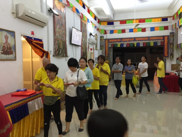 你看這一尊那麼圓滿,你們大家來參加法會都得到加持了,這二十一場雖然說提早結束,沒有到二十一,因為要等到有功德主,所以希望你們沒有報名功德主的,可以盡量報名,下次我們要再做,才有辦法做,不然佛堂會虧本,如一場裡面只有一位功德主,肯定虧!你們都看到每一場都要那麼多的供品,還要請上師,所以也請大家多多發菩提心,有你們大家的護持才能夠誏佛法廣傳深遠,才能夠讓上師來講佛法,大家都你看我、我看你,那佛堂也很難經營,我們來到這邊,沒辦法幫到佛堂,我們也不好意思,也不好意思來這邊白吃白喝的,你看那個白吃白喝的又來了,而且一來還來三個,這個是地痞流氓,痞子才會這樣,耍賴嘛,白吃白喝都是這樣的,拍拍屁股就走人,這樣是不行的。所以希望大家多多發心來護持我們萬法堂。下回來呢,能夠每一場法會都能夠有4-5個以上!回主題,那麼修此法的人,一切的惡星來侵害,一切的災難,一切的沖犯疾病之苦,如鬥爭、戰亂、惡夢、惡神蠱毒、厭魅咒等等,全部都會被解除消滅。也就是修此法能讓你平平安安的,能夠消除所有的災難跟疾病,包括瘟疫還有戰亂,所以這一尊是很大的菩薩,今天你們來到這邊參加,是很有福份的!萬法堂是很用心,在幫大家請法,我們蔡主席是這樣,理事也是這樣,都是為了讓大家能夠聽聞到更多的妙理妙法,所以他們都很用心在佈置壇城,每一場法會都有它的用意的!不是隨隨便便安排一場法會,都是希望能夠利益到大家,希望你們大家能夠珍惜,這一世好不容易有這個法緣,皈依一位成就者,又有那麼圓滿的人身,希望大家應該好好珍惜修行,起碼下輩子我們還可以再相見,那時候你16歲,我17歲,起碼我們還可以兩小無猜,神鵰俠侶行走江湖,不要一來,一個當姑姑50歲,一個才17歲,那我這個嫩芽太吃虧了,好納,今天的開示就到這個地方,祝福大家,明天最後一場,歡迎大家繼續的來護持,阿彌陀佛!