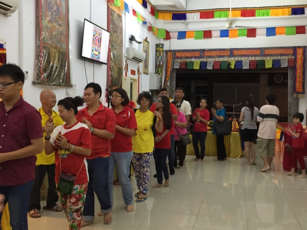 以上為佛所說,這造佛形像的人,莫不解脫。當時會上天眾,在人間尚無有前生作佛像者,而前生所有造像者的天人都已經得到解脫。如優樓頻螺迦葉、伽耶迦葉、那提迦葉,祂們都因過去有發心修佛堂而得解脫生死。還有憍梵缽提過去曾經是牛身,只因在一佛堂旁邊吃草,見佛尊容,生大歡喜心,因此下世轉為人身修習佛法,而成阿羅漢。阿逸樓馱尊者曾因燃燈供養於佛,輸鞞那曾用心掃佛堂,阿婆摩那曾於佛像前燃燈施明,難陀比丘曾因用香水灌沐佛像。如是等無量諸阿羅漢皆悉曾於佛像之所薄申供養,由此福故皆永離諸苦而得解脫。因此世間眾生若能至心信樂,造佛形象,或一瞻一禮、或燃一燈一香、或供一花一果,皆為涅槃解脫而種了無上勝因,將來也必能出離生死輪回。是故經云:若復有人能於我法未滅盡來,而發心造佛像者,當於彌勒初會時皆得解脫。所以,這造像功德能得解脫,是自利,同時造像功德還有利他的功德。因此佛言:若有眾生非但為己而求出離,乃欲為無上菩提造佛像者,當知此則是三十二相之因,能令其人速至成佛。解說:若人不是為了自己,而是為了所有眾生瞻禮佛像,種植善根,增長福德,使他人離苦得樂,那麼這種造像功德則是利他之行,造像者必能悲心具足,發起根本智和後得智,成就無上菩提。所造之像必能普渡眾生,廣利人天,一切諸佛莫不以造像成就佛道。所以造佛形像能為三十二相,成就菩提的正因。你是為了利益眾生故,贊助佛堂的佛像,為了廣度眾生故,為了要發這個菩提心,你這個人跟佛是沒有兩樣的,這個也是具足佛的三十二像的因緣,佛也是過去累積造像的功德,所以才成就阿耨多羅三藐三菩提,所以今天大家贊助萬法堂49堂的功德主,你就有這三十二相之因,及成就阿耨多羅三藐三菩提之因,你們要去哪邊找這樣的因緣,再不做的話,沙央(馬來語後悔之意),我無話可說啦,因為我要走了,那麼大家,你們所寫上去的名單,包括以後贊助佛堂佛像的人,全部都可以寫上去,因為這49壇就是為所有發心贊助萬法堂的人,所做的護摩加持及迴向,所以隨時只要你們有心想要贊助佛堂,寫上去了就是了,一樣能得到師尊三寶的加持,得到這49場法會的加持,不是說這49場做完就沒有了,有一天你突然間發現,唉啊我業障現前了,怎麼辦?趕快再找一尊寫上去就對了,盡力的發心,雖然我現在能力不足,我只寫三千塊,但是加持以後,你可能事業好了啊,你的災難退了,福分增長了,你很多事情都順利了,你也賺了錢了,這時候你必須再發心回來供養師尊及三寶還有幫助萬法堂的建設,我以前供養三千太少了,現在我事業成功,我再來贊助起壇一萬塊功德主,這個就是菩提之因!懂嗎?難得有這個因緣,所以佛陀才講,你如果是為了利益眾生而求出離,乃欲為無上菩提造佛像者,所謂的無上菩提就是你發了很大的願,建造佛像贊助佛堂,是為了度眾生故,令眾生得解脫故,因為這樣的發心,當知此人則有三十二相之因,能令其人速至成佛,你看這個功德多大,所以造佛相為造菩提之正因呀!