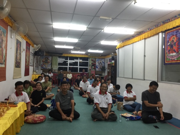 今天很開心跟大家結緣,那麼當然希望多點時間跟大家聊聊佛法,我十四歲看了師尊的著作,那時候內心就有一個聲音告訴我,你要去找這個人,要皈依祂,要賺錢去供養這個人,我那時候根本不知道什麼叫皈依,什麼叫供養,但是自己的內心就講出這些話,後來師尊到美國,因緣就錯開了,那麼在軍中,有一天我突然發現,我很久沒有吃葷了喔,沒有吃過肉,都是吃素,我就想,這樣也沒有什麼不好,也沒啥不習慣的,就繼續吃下去,一直到我退伍,我在軍中早晚都會念經,也遇到很多靈界,我就會去想一個問題,既然這些靈界都是存在的,那麼佛經中的這些佛啊神啊應該也是存在的,不會只有這些靈界存在而已,那你說這些靈界鬼魂,不是只有我遇到而已,而是從其他地方來這當兵的,有的是大學,有的是碩士,士農工商都有,這些人也有遇到過,那當然這個問題就要去思考,祂是真的有,不是假的,這個是很重要的,所以我們就要想我們到底為何而來,死後我們要去哪裡,我在三、四歲的時候,我就離家出走了,拿了行李就走,走到累了餓了,摸摸鼻子又走回來,結果沒有人發現你離家出走(眾人大笑),以前我住台灣南部住高雄,六合一路二路夜市那裡,那時候我就會想,我為什麼會在這裡?這裡不是我要來的地方,我就覺得很多人怪怪的,我在做什麼,好像有人在注意,在看著我,小時候很怪,我今天跟那個弟弟講(同門),我十四歲的時候,就去工作賺錢,然後去買一輛車,是很大的車喔,二千八CC的福特千里馬,在早期都是董事長經理在開的,我就是有一種想法,不求人,什麼事都靠自己,你要伸手去跟人家拿,不如靠自己,因為母親比較疼哥哥,因為哥哥姊姊是大的,她說你還小,還不可以騎,危險啊,我又想說沒關係啊,你不給我買,我靠自己啊,要什麼,自己努力去打個工,很快你就能買一輛,當然不是全新的,是中古車,你就上路了,一開就開了三十多年車,當然這個是不可以學習,那時候只是一種想法,比較,你不買給我,我自己也可以,哥哥要媽媽買,我不用,我靠我自己,小時候就有這種很奇怪的特性,不過那時想法是很幼稚,人,千萬不要跟人家比較,比不完的,最後只有自找苦吃,我們要比的是修行,是成就,這個才是真實的,所以呢,你們有空就隔壁看看,百廢待興,需要大家一起護持,大家來發心,希望在不久的將來,能夠趕快把佛堂做得更完美,能度更多的人來護持來實修,能夠多請一些上師來講解佛法,時間也晚了,明早我和法師要趕9點的飛機飛吉隆坡,今天早上6點就到吉隆坡機場飛來關丹,明天早上又要趕9點的飛機飛吉隆坡。這次來沒有幫到堂什麼,希望下回有機緣能幫堂的建設出力。最後在這個地方祝福大家,扎西德烈!