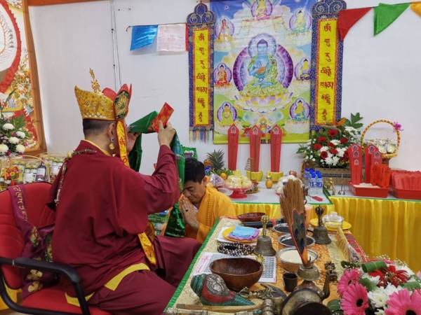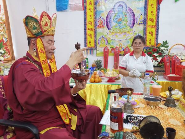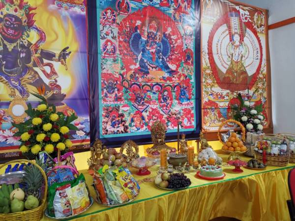 話說回來,今天我們這場法會要感謝寶淨同修會的主席,還有所有的理事,同門熱情的邀約,才有這一場法會的開始,大家也看到,我們現在沒有冷氣,是不是很熱,沒有壇城,這個佛堂剛才買還要貸款,錢還沒有付清,剛剛修法,我們也不好意思說,勒令房東不要拿錢,我們不可以這麼做,我們只能說請他多給我們一點時間,給我們建設,有貴人來護持,所以今天的法會是需要大家的護持,現在我為大家略說發心供養佛像發心的功德,這個很重要,包括你們這一生未來世,這個是佛陀所說的,我代師為大家說聖言教法,(一)、供養佛像發心的功德,我們今天發心護持佛法三寶,護持寺廟堂不分大小佛像,每尊佛像都代表了佛的身,就算是再矮小的佛像也是代表佛的身。我們見到佛像、頂禮佛像時,應該想起佛的身,也應該想起偉大的佛陀具有的無漏、超凡的功德,而後,生起歡喜心、恭敬心、和信仰心。塑造佛像真正的作用是讓大家提起正念,恭敬佛身,憶念佛的功德,同時發起誓願並學修佛的教理,最後成就佛這些功德。若是沒有起到這樣的作用,甚至讓你生起了貪心、嫉妒心、傲慢心、嗔恨心等煩惱,那麼我們塑佛像就失去其意義了,這樣我們塑的就不是佛像而是魔像。當然我們塑造佛像不分大小,就是依照你的能力能做得到的,在這一生,不管大小,你選擇一尊來做就對了。那麼我們印製佛經也是同樣,你看見佛經的時候,有沒有把它當做是佛說的真正法寶,視為佛的真言,有沒有想到佛的功德?有沒有發誓發願學習佛的教理,並發心要修成就這些功德。我們平時早晚修法用的法本也是法寶,那怕是一張A4的紙張,像我們今天的儀軌,平時在大法會中,那些儀軌一不注意就被大家踩來踩去,大家都把它扔在地上,隨便跨,你要知道那跟佛經沒兩樣,那都要注意的。因為法本是用普通的紙印刷的,我們每天都能夠接觸的到並使用,所以對它就沒有特別歡喜心,也沒有信心,如果今天我們是用999.9的純金打成,用金銀珠寶刻成的經文,那麼大家一定會很喜歡,因為是用金銀珠寶刻成的經文,所以大家就感覺特別的有加持力。這就是你已經產生了分別心,著了魔相了,這不是佛的加持,這是不清淨心。