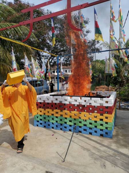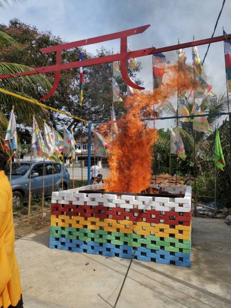 首先請大家雙手合十,我們虔誠一心頂禮大恩遍知具德圓滿真佛宗依怙主大圓滿覺尊者聖尊蓮生法王三身佛佛父佛母,頂禮大持明金剛上師盧勝彥密行尊者,頂禮大白蓮花童子華光自在佛,頂禮普賢王如來阿達爾瑪佛本初佛婆仙如來佛父佛母,頂禮真佛宗歷代大圓滿傳承祖師佛父佛母,頂禮瑤池金母大天尊,頂禮金剛手菩薩,觀世音菩薩,文殊菩薩,頂禮今日法會火供主尊:大威德金剛降焰魔尊嘿嚕嘎,頂禮蓮花生大士,曼達拉娃佛母,伊喜措嘉佛母,蓮師八變諸尊。頂禮真佛宗八大本尊,頂禮十方三世如海部眾壇城主,頂禮龍樹菩薩、阿底峽尊者、宗喀巴大師,祖師瑪姬拉尊者,頂禮四不共護法:不動明王,穢跡金剛,大力金剛,頂禮大幻化網金剛壇城諸尊大殊勝黑嚕嘎佛父母,南摩普巴金剛黑嚕嘎十三不共金法佛父母及其眷屬,頂禮文武百尊,頂禮一髻佛母、二十一度母、七眼佛母、金剛亥母、咕嚕咕咧佛母、獅面空行母、虎面空行母、熊面空行母。頂禮寶淨同修會壇城內所有諸佛菩薩護法諸尊,頂禮五方龍王佛、藏財神院、地藏殿諸尊、頂禮三象王菩薩、帝釋天三十三天主、火天神,水天神,堅牢地神、各方財神。頂禮所有山神山嶽寺諸尊,頂禮城隍爺及大士爺、衆鬼王、日巡神夜遊神,本地境主、山神、水神、風神、雨神、土地福德正神,頂禮一切的龍王龍神,感恩諸尊的加持。阿彌陀佛!(眾人熱烈鼓掌)也謝謝今天蓮顏法師的護壇,及寶淨同修會主席眾理事及今天來參加法會及報名的同門善信,感恩大家的護持,謝謝你們。阿彌陀佛!(眾人熱烈鼓掌)大家都是我們寶淨同修會的貴賓,謝謝你們大家的護持(大眾熱烈鼓掌)!