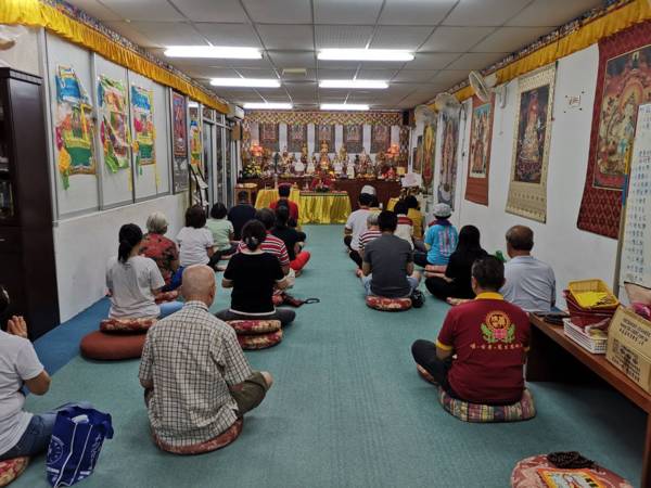 所以外面的一切,都跟我們沒有關係,就算你剛下班也好,只要一進了佛堂,這時候的你,已經不是一般人了,你是菩薩起修,你已經不是眾生了,不要想說,我現在業障那麼重,年紀那麼大,我可能沒有辦法成佛了,不要有這種想法,只要你的善念在,只要你發出那樣的願力,你知道願力的力量有多大嗎,我打個比方,寶淨同修會現在什麼都沒有,佛堂需要重新的佈置,需要有很多的佛像本尊,那為什麼我們須用這些壇城本尊?因為我們每年每個月都有不一樣的本尊帶領大家來修法,如果今天我們佈了藥師佛的壇城,就有十二藥叉大將,每年某個月份,我們固定念藥師經點藥師燈祈福,像我今天這裡結束,明天飛吉隆坡,後天我飛美里,我們蓮杏法師已經先去美里萬法堂,在那邊念四十九部藥師經,今年就帶領大家一起同修唸80多部藥師經。所以前一年多前美里萬法堂就預約了,藥師佛法會時間到了,又是一年一度法會時間,所以,你們可以過來這邊幫忙學習,其實我們很忙的,但是因為都是老朋友,我們希望大家有共同的理念,弘揚真佛密法,弘揚所有的佛法,所以法師先去那邊念四十九部藥師經還有點燈祈福,幫大家先做迴向,那麼我去的時候,再加持一下壇城,星期六就主壇藥師佛的藏密護摩法會,所以你們佛堂發心佈好壇城,也是統領大眾,你也是利他也是利己,未來你們寶淨同修會壇城佈好也是可以每年辦一場藥師佛誦經祈福法會,藥師佛誦經祈福有很多感應的,加持力不可思議,有十二藥叉大將,有日光菩薩、月光菩薩,諸大菩薩都是已經成佛的階段,這個加持力不可思議。