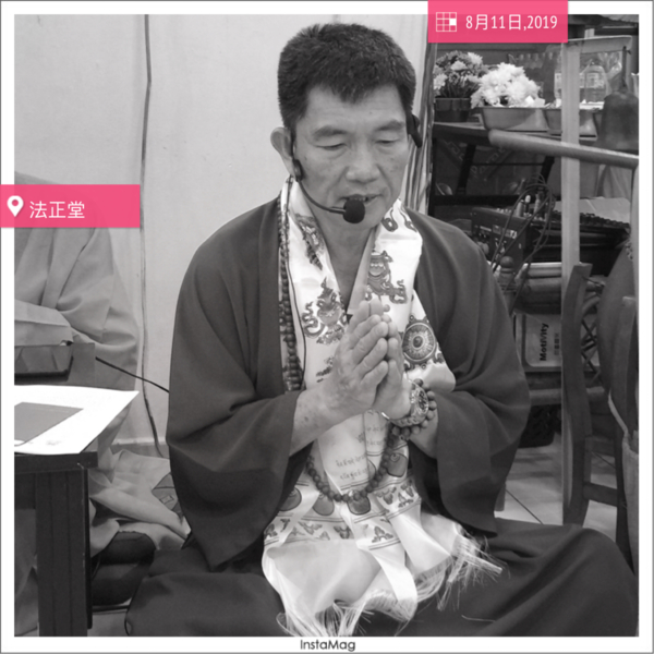 我昨天在萬法堂,我講了七日成佛一心不亂,若一日,若二日,若三日…..若七日一心不亂,這是顯教的七日成佛,密教也有七日成佛,我們是即身成佛,當下成佛,所以為什麼每次我們睡覺的時候,要想師尊想阿彌陀佛住頂,其實你有本尊,就一定有手印、有咒語、有觀想,你就把你的床想成一朵蓮花,把自己想成吽字,你把自己的頭想成吽字的頭,師尊變化為阿彌陀佛住頂,變為阿字,阿字旁邊一個勾,像5的勾,就勾住你的頭,你的日輪,你每天睡覺就這樣想,一口氣不來,你已經是在阿彌陀佛淨土了,阿勾住吽,阿吽就上去了,這個就是密教的七日成佛法,事實上,也是即身成佛法,平時你們要訓練寫吽跟阿,睡覺的時候,師尊變化為阿彌陀佛住頂,變為阿字,我們變成吽字,阿勾住吽,就去阿彌陀佛淨土,不會下三惡道,所以今天來,聽到這個法,你也是賺到了,也希望大家多發菩提心,多來護持,我們希望法正堂越來越莊嚴,能夠利益更多的眾生,謝謝大家。阿彌陀佛!