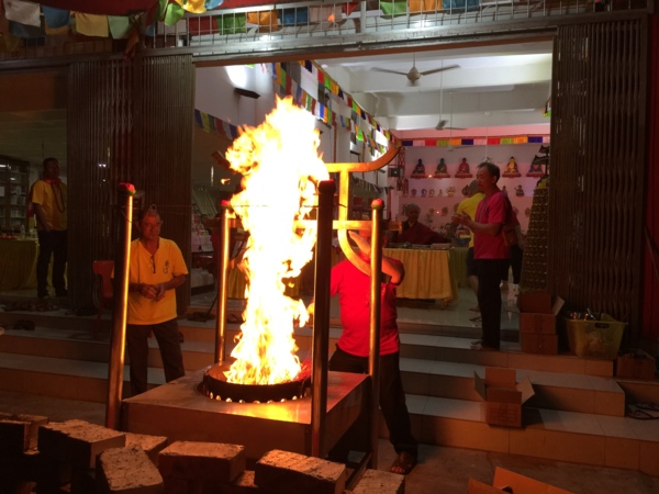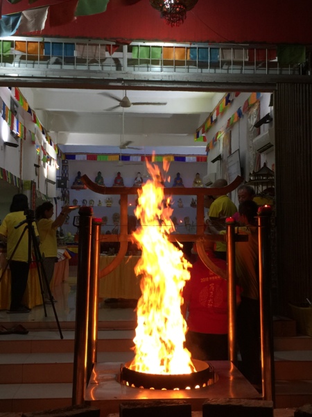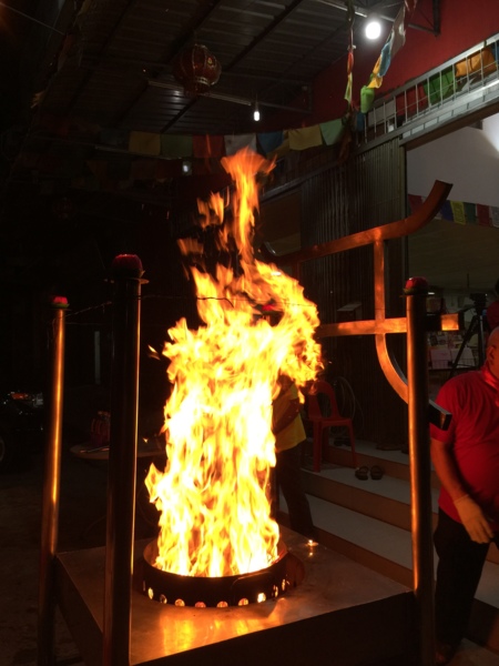 謝謝大家百忙之中,依然的來護持,今天這一場法會可以說加持力非常強,剛剛火一升起來,一召請,師尊蓮華生大士就已經下降,還有八大黑嚕嘎,還有蓮師八變諸尊,這些都是蓮師的眷屬,當初藏王在建西藏第一寺桑耶寺的時候,一直建不起來,建好東牆,要建西牆時,東牆就倒了,後來沒有辦法,就去請印度成就者蓮花生大士入藏,所以那時候蓮師進入到西藏的時候,一路上降伏了很多當地的鬼神,那當然當地的宗教也排斥,甚至於鬥法,最後全都被蓮師給降伏了,他到了西藏,馬上差遣弟子回去印度,迎請普巴金剛黑嚕嘎十三金法,就在普巴密續快要到了西藏的時候,這些魔軍聞風喪膽,逃的逃,遁的遁,後來蓮師降伏當地的鬼神,白天是人在蓋廟,晚上是這些夜叉界鬼神在蓋,所以你看它的牆是很特別的。蓮師被尊為第二佛,是繼釋迦牟尼佛以後,在西藏被尊稱為第二佛。桑耶寺的全名是「貝扎瑪桑耶敏久倫吉白祖拉康」,藏文含義為「吉祥紅岩思量無際不變頓成神殿」。公元7世紀時,吐蕃贊普松贊干布分別與尼泊爾、唐王朝聯姻,迎娶了赤尊公主和文成公主,同時也將佛教引入了西藏。雖然當時修建了大昭寺和小昭寺,但這些寺院主要用作王室供養佛像,或者給外來的遊方僧提供落腳地點,寺內實際上並沒有修行的僧侶。8世紀末,吐蕃達到了其全盛時期。時任贊普的赤松德贊篤信佛教,他將印度的兩位佛教大師寂護和蓮花生大士,迎請至西藏弘揚佛法,並決定為他們修建一座寺院。經過蓮花生等人的實地勘測,最終選址在靠近吐蕃冬宮的雅魯藏布江北岸興建,並由寂護設計出了建設方案。據《桑耶寺志》記載,762年,赤松德贊親自為寺院舉行奠基,此後在蓮花生的主持下,經過長達十二年時間的建造,到775年終告落成。由於有傳說在初建時,赤松德贊急於想知道建成後的景象,於是蓮花生就從掌中變出了寺院的幻象,赤松德贊看後不禁驚呼「桑耶」(意為「出乎意料」、「不可想像」),後來就把這一聲驚語作為了寺名。